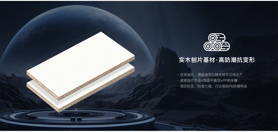 刨片板是新一代環保家居板材被廣泛應用于整體衣柜、櫥柜、電視柜、鞋柜、浴室柜等。無醛添加MDI膠,安全性、穩定性高板材環保等級最高達ENF級。